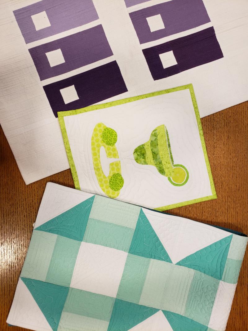 The quilts were designed in response to a “Paint Chip Challenge” in which quilters are given a paint chip and must make a quilt with the colors in the chip, and one other color—either white, cream, or black.
