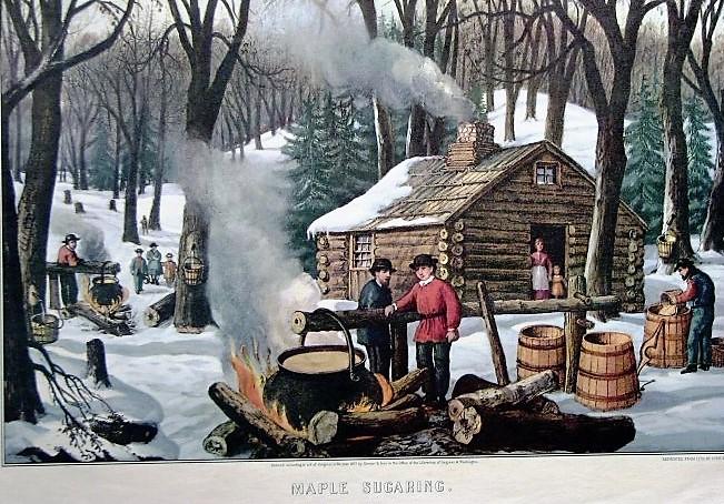 The production of syrup and sugar from the sap of the maple tree was known in America long before the first European colonists arrived. The Native Americans taught the settlers how to collect the sap, and sugar making became one of the most important seasonal tasks of farm life.