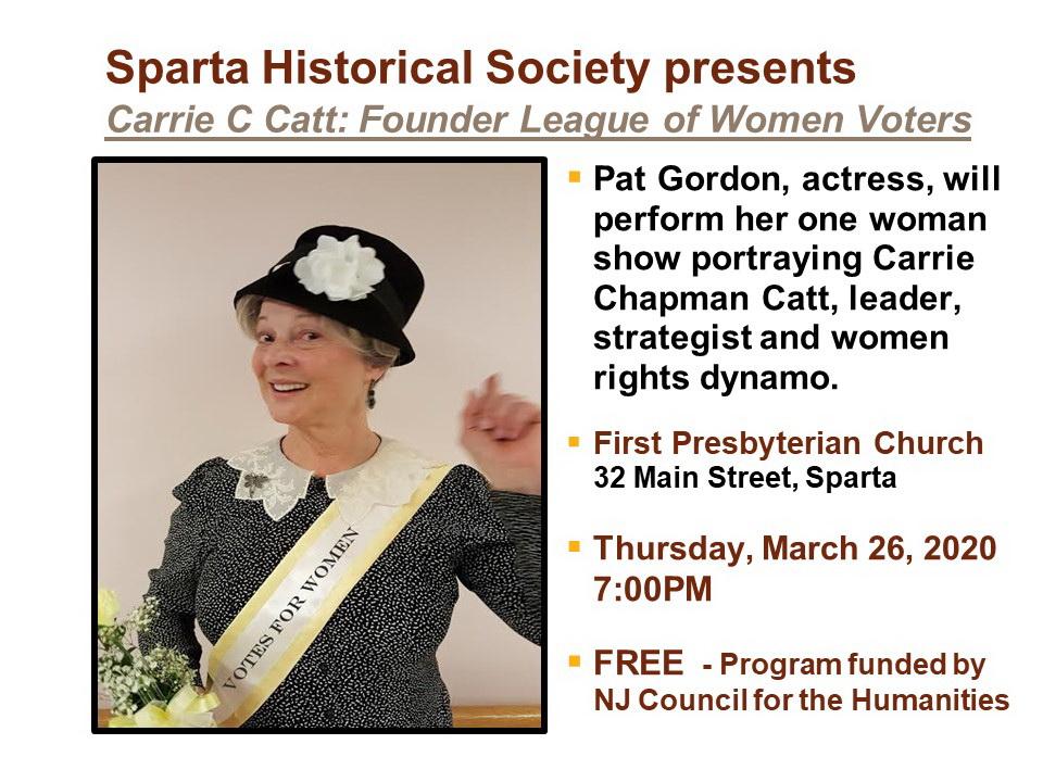 Sussex County - Sparta - POSTPONED - Carrie Chapman Catt: Founder of the League of Women Voters